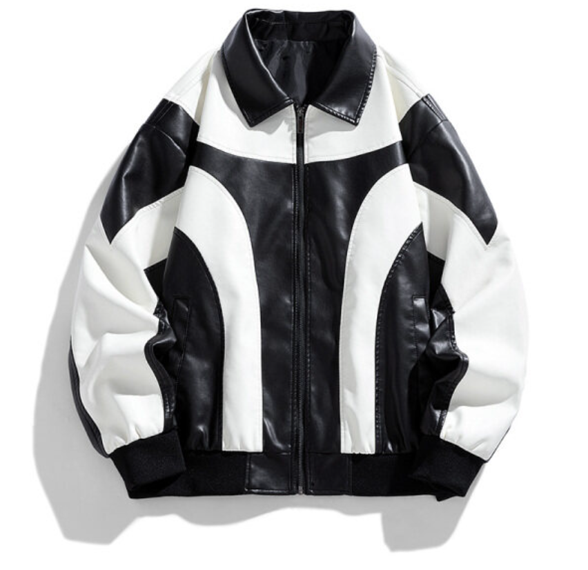 Men's leather jacket, new patchwork men's jacket, PU jacket 556